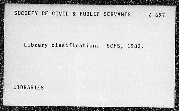 SOCIETY OF CIVIL & PUBLIC SERVANTS 2 697 Library clasification. SCPS, 1982, LIBRARIES