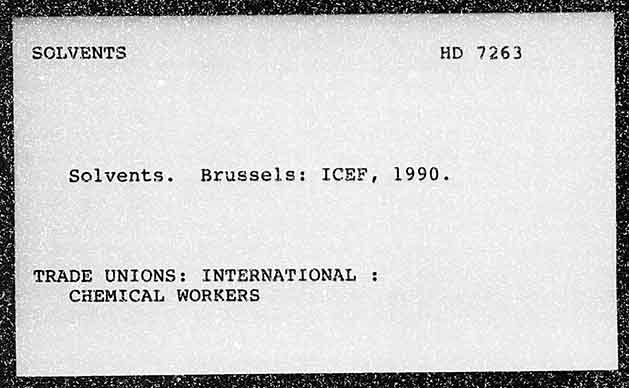 SOLVENTS HD 7263 Solvents. Brussels: ICEF, 1990. TRADE UNIONS: INTERNATIONAL : CHEMICAL WORKERS