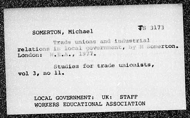 SOMERTON, Michael Trae 1 LLons relation: 4 Ae ht A 7 ee Lonaon: swathe ge ae eee Studies for trade unionists, wok 3e moO dle LOCAL GOVERNMENT: UK: STAFF WORKERS EDUCATIONAL ASSOCIATION
