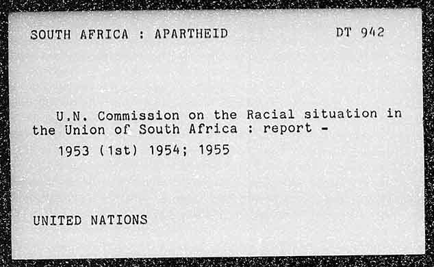 SOUTH AFRICA : APARTHEID BT U.N. Commission on the Racial situation in the Union of South Africa : report - 1953 (1st) 1954; 1955 UNITED NATIONS