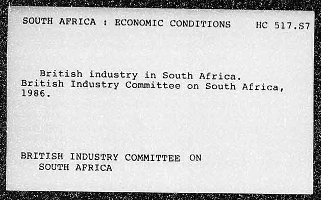 SOUTH AFRICA : ECONOMIC CONDITIONS Hc 517.87 & British industry in South Africa. British Industry Committee on South Africa, 1986. BRITISH INDUSTRY COMMITTEE ON SOUTH AFRICA