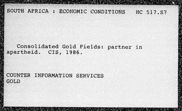 Jt FR a Aae eos SOUTH AFRICA : ECONOMIC CONDITIONS Me Saale eek Consolidated Gold Fields: partner apartheid. CIS, i986. COUNTER INFORMATION SERVICES GOLD