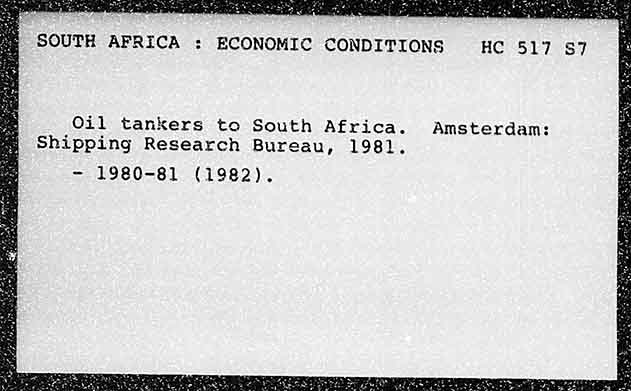 SOUTH AFRICA : ECONOMIC CONDITIONS HC 517 S7 Oil tankers to South Africa. Amsterdam: Shipping Research Bureau, 1981. - 1980-81 (1982).
