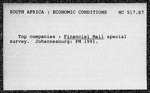 SOUTH AFRICA : ECONOMIC CONDITIONS HC 517,87 e Top companies : Financial Mail special survey. Johannesburg: FM 1991.
