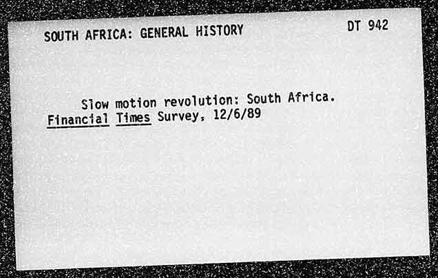 SOUTH AFRICA: GENERAL HISTORY Slow motion revolution: South Africa. Financial Times Survey, 12/6/89