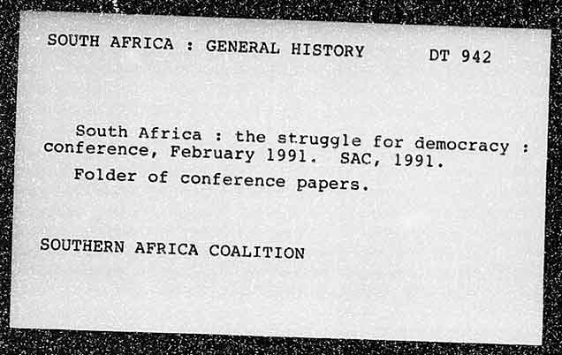 SOUTH AFRICA ; GENERAL HISTORY South Africa : the Struggle for democracy : conference, February 1991, SAC, 1991. Folder of conference papers. SOUTHERN AFRICA COALITION