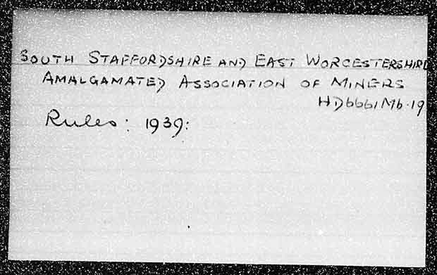 HD 6661 M6.19 - SOUTH STAFFORDSHIRE AND EAST WORCESTERSHIRE AMALGAMATED ASSOCIATION OF MINERS