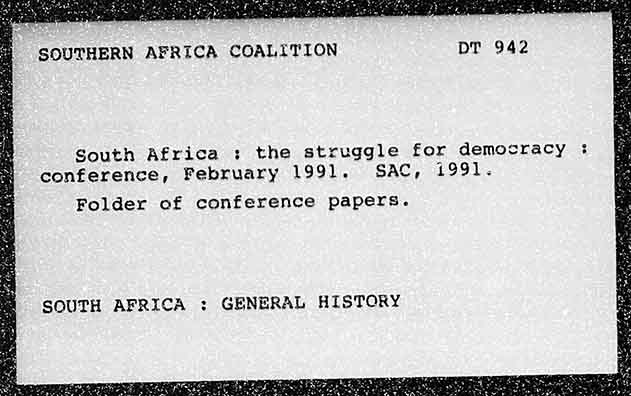 SOUTHERN AFRICA COALITION South Africa : the struggle for democracy conference, February 1991. SAC, 1991. Folder of conference papers. SOUTH AFRICA : GENERAL HISTORY