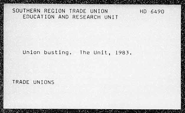 fe ate) St Ane 4 ee he SOUTHERN REGION TRADE UNION HD 6490 ENUCATIGN AND RESEARCH UNIT Union busting. TReSaUnii L983: TRADE UNIONS