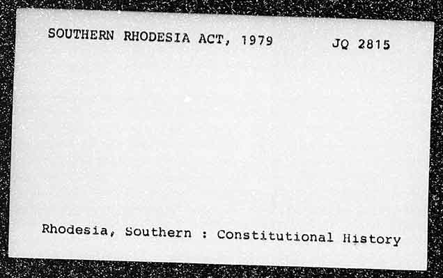 SOUTHERN RHODESIA ACT, 1979 JQ 2815 Rhodesia, Southern : Constitutional History