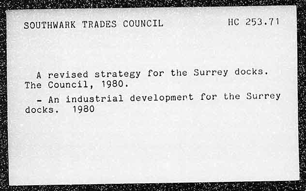 SOUTHWARK TRADES COUNCIL A revised strategy for the Surrey docks. The Council, 1980. -~ An industrial development for the Surrey docks. 1980