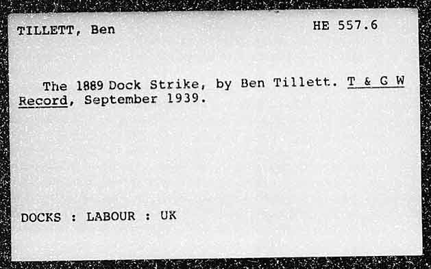 SEAT Hi Renu Paid acter ean ra CP eer. & ay WRSe enna eee SENSE ” TILLETT, Ben HE 557.6 Tne 1989 Dock Strike, by Ben Tillett. T & GW Record, September 1939. DOCKS : LABOUR : UK