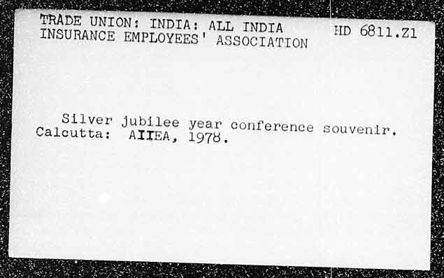 "RADE UNION: INDIA: ALL INDIA INSURANCE EMPLOYERS! ASSOCIATION HD 6011.21 Sliver jubilee year conference souvenir. Calcutta; AIITEA, 1978,