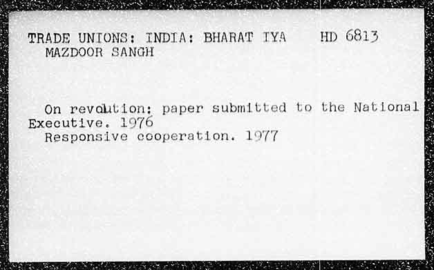 TRADE UNIONS: INDIA: BHARAT TYA HD 6813 MAZDOOR SANGH On revahtion; paper submitted to the National Executive. 1976 Responsive ccoperation. 197 i f