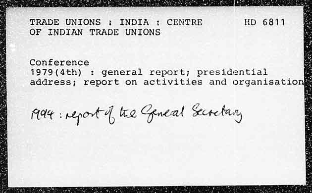 TRADE UNIONS : INDIA : CENTRE HD 6811 OF INDIAN TRADE UNIONS Conference 1979(4th) : general report; presidential a address; report on activities and organisationg M44 ; report 4 a2 Ceneal Sete funy