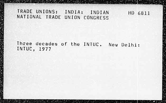 TRADE UNIONS: INDIA: INDEAN HD 6811 NATIGNAL TRADE UNION CONGRESS Three decades of the INTUC. New Delhi: INTUC, 1977