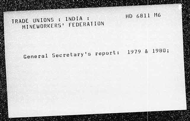 HD 6811 M6 TRADE UNIONS ¢ INDIA + MINEWORKERS! FEDERATION General Secretary's reports: 1979 & 19980;