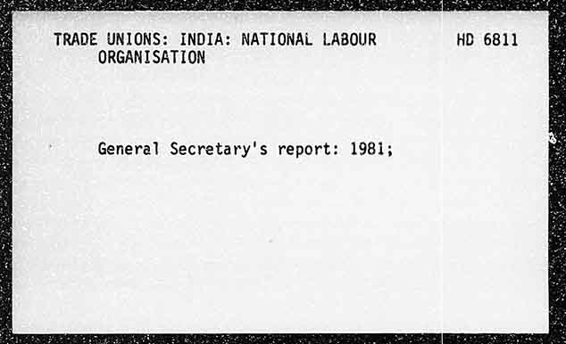 TRADE UNIONS: INDIA: NATIONAL LABOUR HD 6811 ORGANISATION General Secretary's report: 1981;