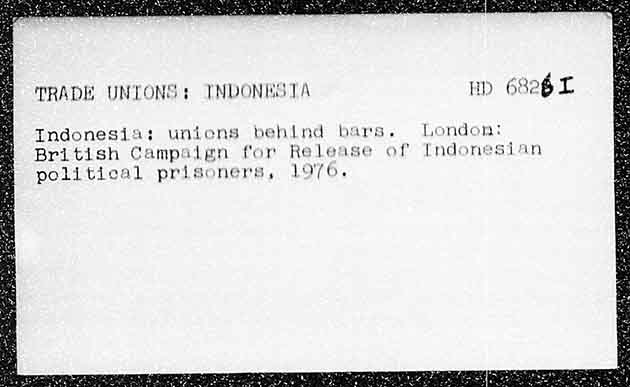 TRADE UNTONS + TNDONIGTA behind Re lease LOo76,. Indonesia: unions British Campaign for political prisoners, bars Hb 6826 L A London: of Indonesian