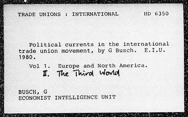 TRADE UNIONS : INTERNATIONAL HD 63590 Political currents in the international trade union movement, by G Busch. E.1I.U. 1980. Vol 1. Europe and North America. fT. The thiva World BUSCH, G ECONOMIST INTELLIGENCE UNIT