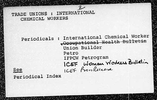 2 TRADE UNIONS : INTERNATIONAL CHEMICAL WORKERS Periodicals : International Chemical Worker as : aticnalHealth Buttetin Union Builder Petro IFPCW Petrogram ICEer Ldoman Waovkers Bilal. Ses Cer Prem Release Periodical Index