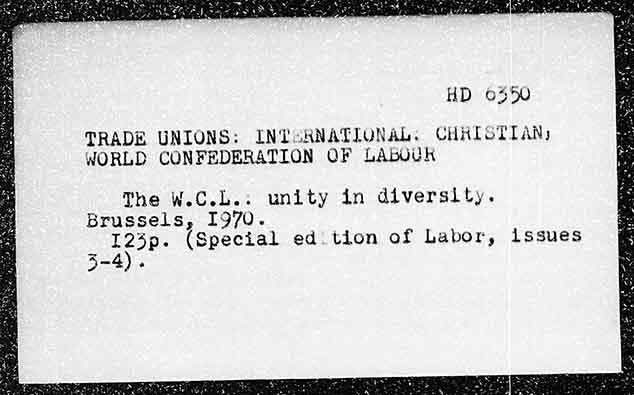 HD 6350 - TRADE UNIONS : INTERNATIONAL : CHRISTIAN : WORLD CONFEDERATION OF LABOUR