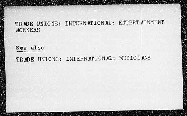 TRADE UNICNS: INTERNATIONAL: ENTERT ALNMENT WORKERS See alsc TRADE UNIONS: INTERNATIONAL: MUSICIANS
