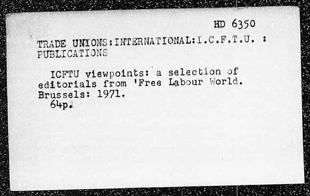 HD 6350 NO sTNTERNATIONAL:1.C.F.T.U. 3 ICFTU viewpoints: a selection of editorials from 'Free Labour Werld. Brussels: 1971. 6up «