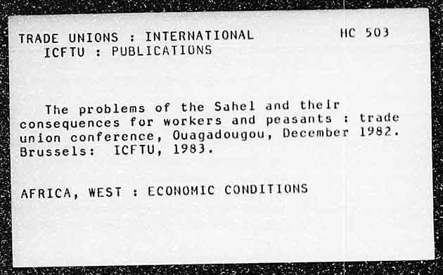 H TRADE UNIONS : INTERNATIONAL a ICFTU : PUBLICATIONS ke problems of the Sahel and their consequences for workers and peasants ; trade union conference, Ouagadougou, December 1982. Brussels: ICFTU, 1983. AFRICA, WEST : ECONOMIC CONDITIONS