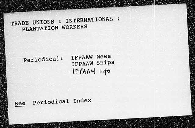 TRADE UNIONS ; INTERNATIONAL : PLANTATION WORKERS IFPAAW News IFPAAW Snips LEC(AAM | ufo Periodical: See periodical Index