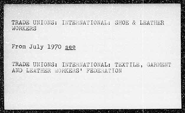 TRADE UNIONS: WORKERS From July 1970 see TRADE UNIONS: INTERNATIONAL: THXTILE, GARMENT AND LEATHER WORKERS! FEDERATION