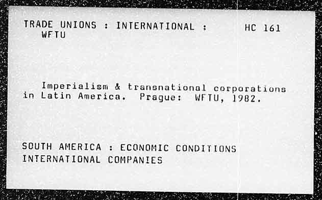 TRADE UNIONS : INTERNATIONAL WFTU Imperialism & transnational corporations in Latin America. Prague: WFTU, 1982. SCUTH AMERICA : ECONOMIC CONDITIONS INTERNATIGNAL COMPANIES