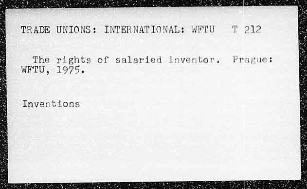 TRADE UNIONS: INTERNATIONAL: WFTU The rights of salaried inventor, WFTU, 1975. Inventions