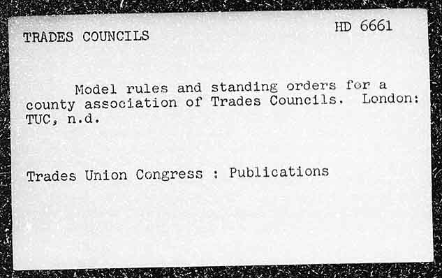 BERD CE Bit ae = HD 6661 TRADES COUNCILS Model rules and standing orders for a county association of Trades Councils. London; TUC, n.d. Trades Union Congress : Publications