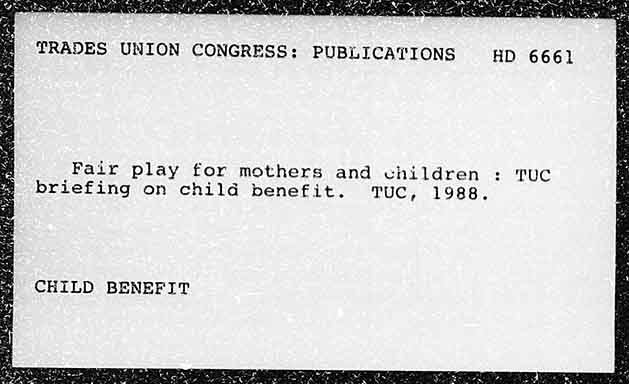 TRADES UNION CONGRESS: PUBLICATIONS Fair play for mothers and children : TUC briefing on child benefit. TUC, 1988, CHILD BENEFIT