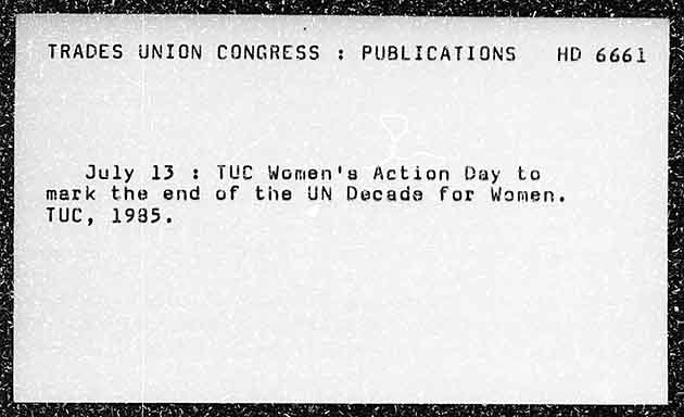 TRADES UNION CONGRESS ; PUBLICATIONS HO 6661 July 13 : TUC Women's Action Day to mark the end of the UN Decade for Women. TUC, 1985.