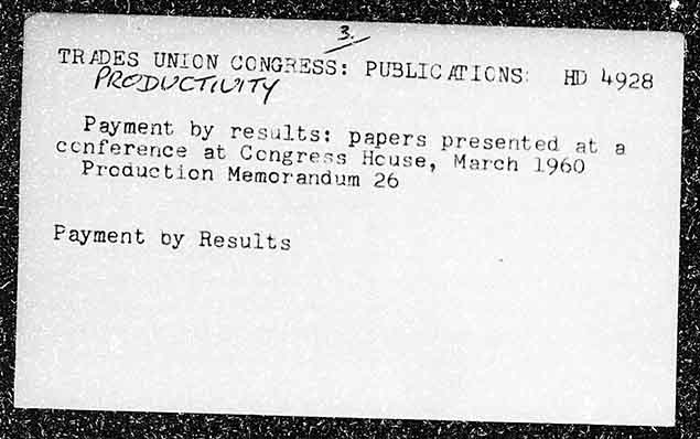 = RESS: PUBLIC ATICNS: HD 4928 TRADES UNION CONG PREDUCTILY TY Payment, by results: papers presented at a Cccnference at Congress Heuse, March 1960 Preduction Memorandum 26 Payment oy Results